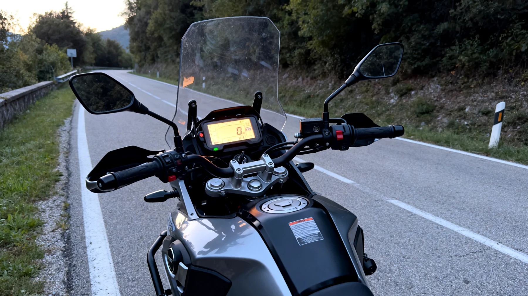 Il primo elemento che colpisce è il cruscotto TFT da 7 pollici, una dotazione che su molte moto di fascia media non è ancora scontata. Lo schermo fornisce in tempo reale informazioni sulla pressione dei pneumatici, una funzione che migliora concretamente la sicurezza in marcia. A completare il quadro tecnologico ci sono la connettività Bluetooth e le prese USB, dettagli che fanno la differenza nell’uso quotidiano.
